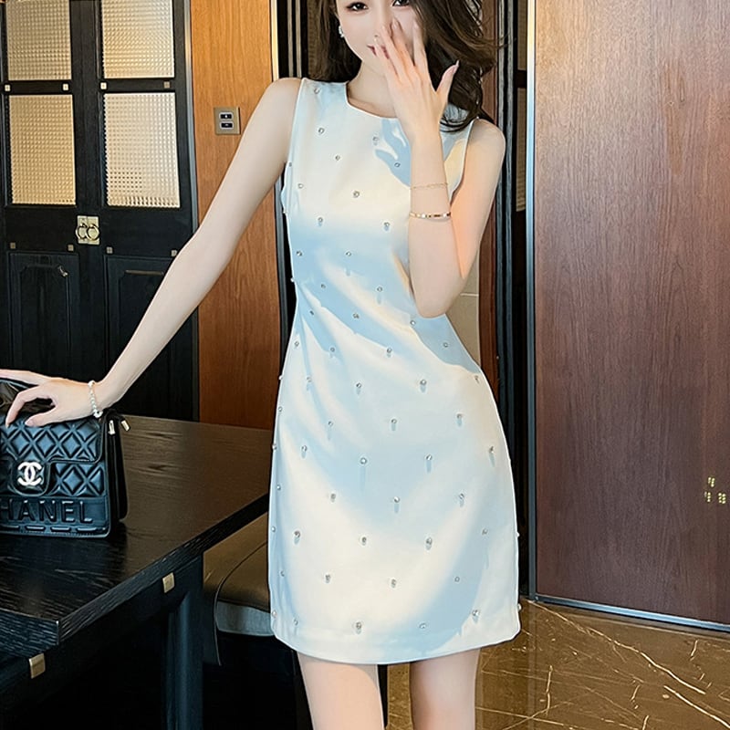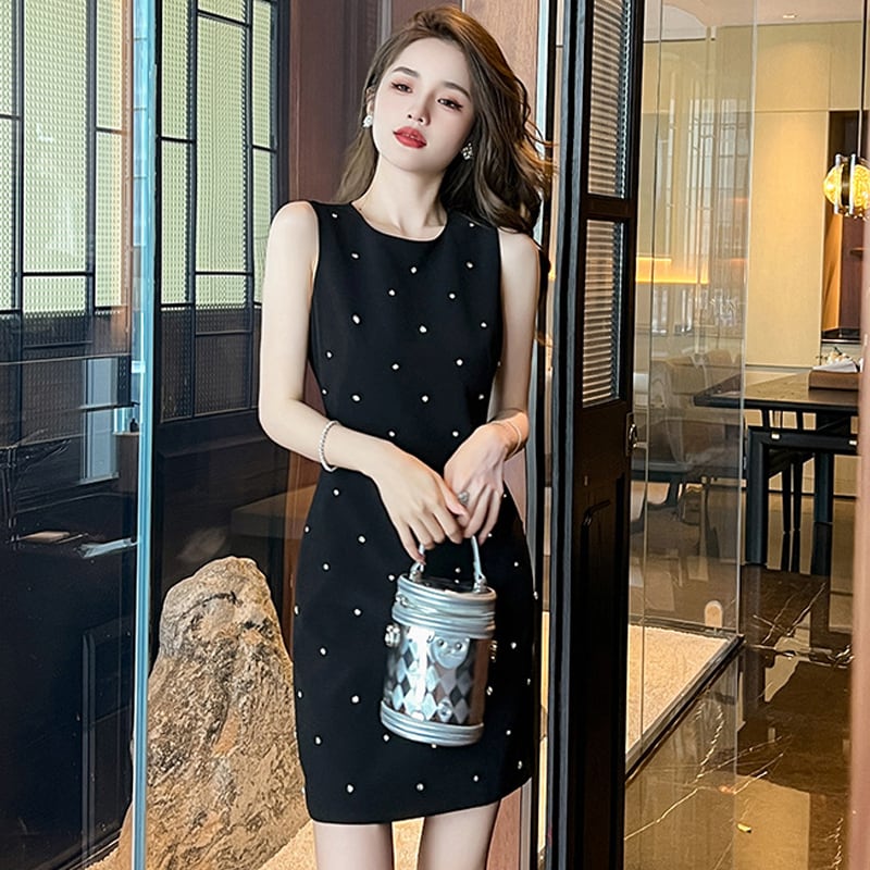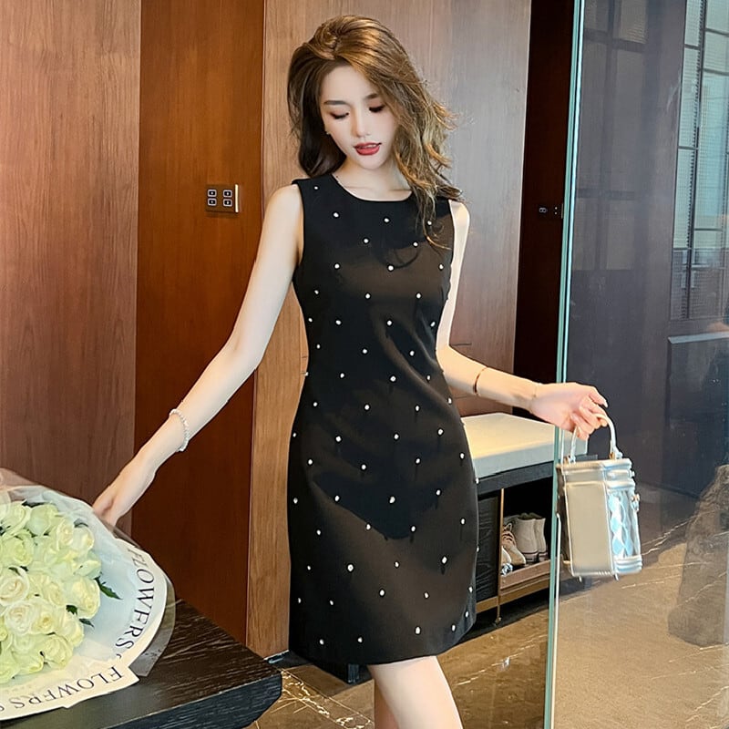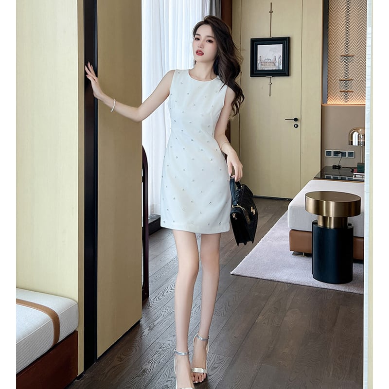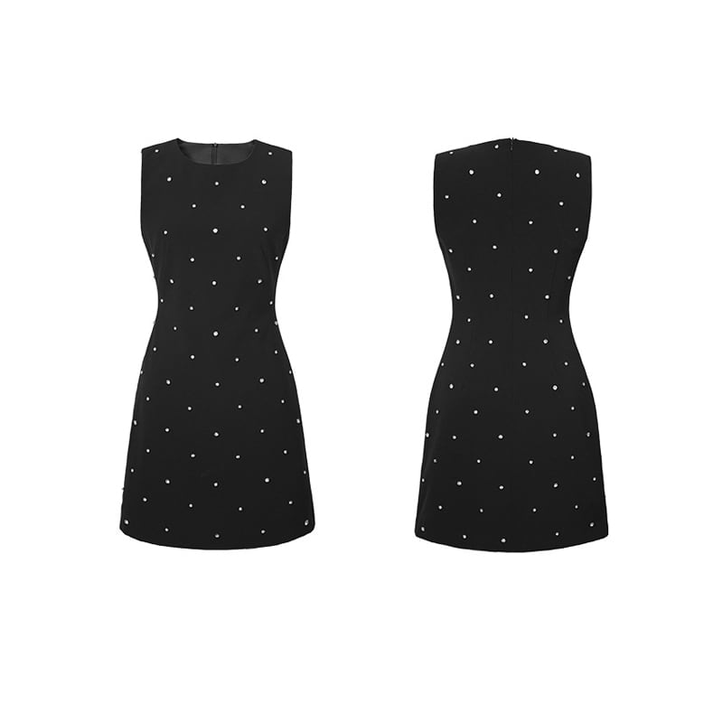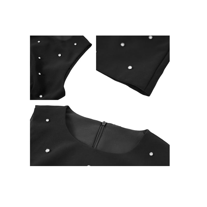 【夕暮薔薇シリーズ】ワンピース ラインストーン ノースリーブ シュート丈 ブラック ホワイト S M LXL