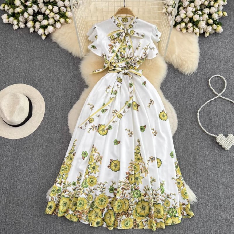 シャツワンピース プリント 大きいサイズ スカラップスリーブ ロング丈 M L XL 2XL