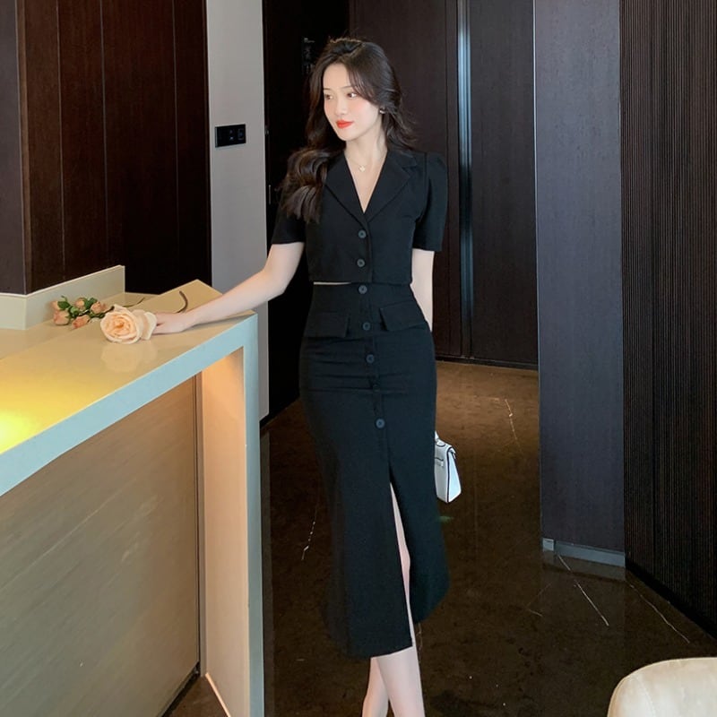 セットアップ Vネック 気質UP トップス+スカート ライトブラウン ブラック S M L XL