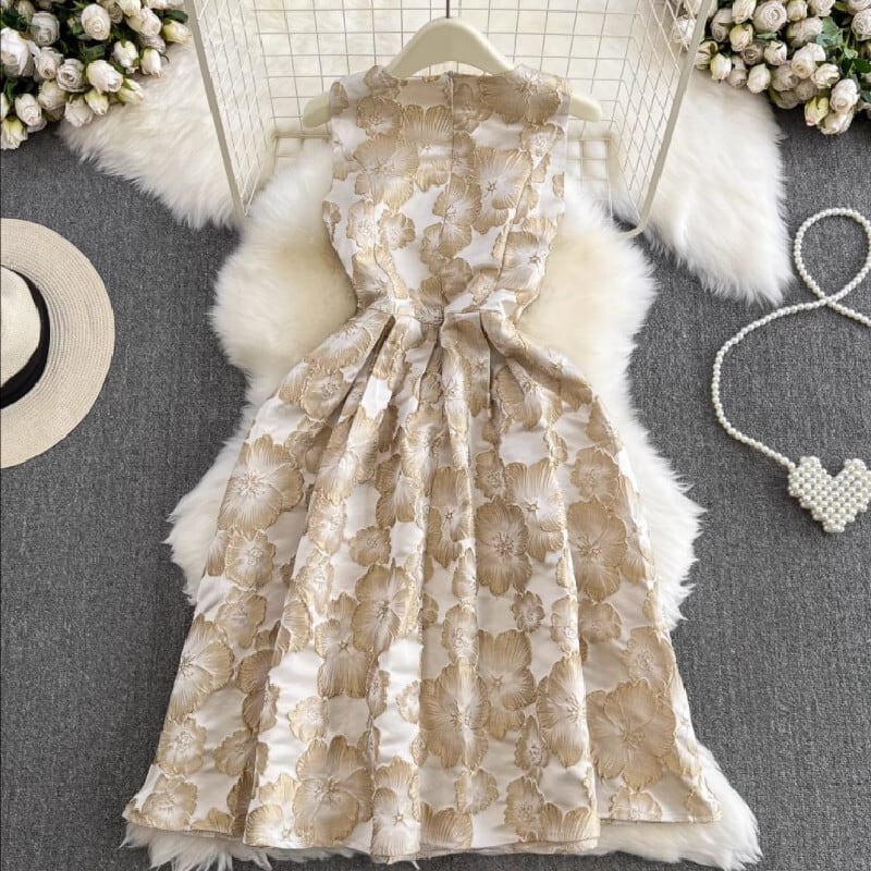 ワンピース 刺繡 ラウンドネック 花模様 大きいサイズ Aライン ノースリーブ S M L XL 2XL