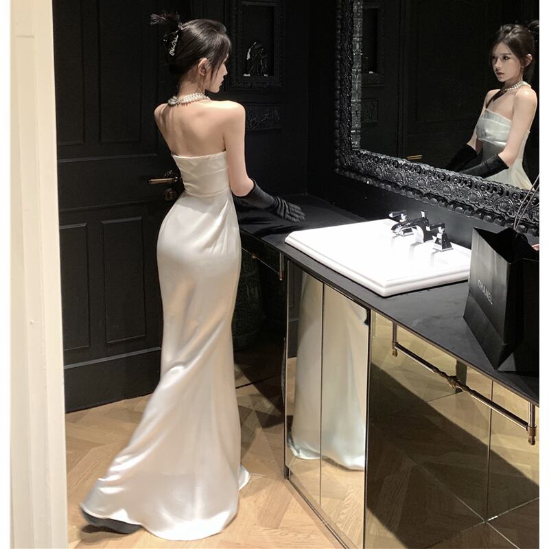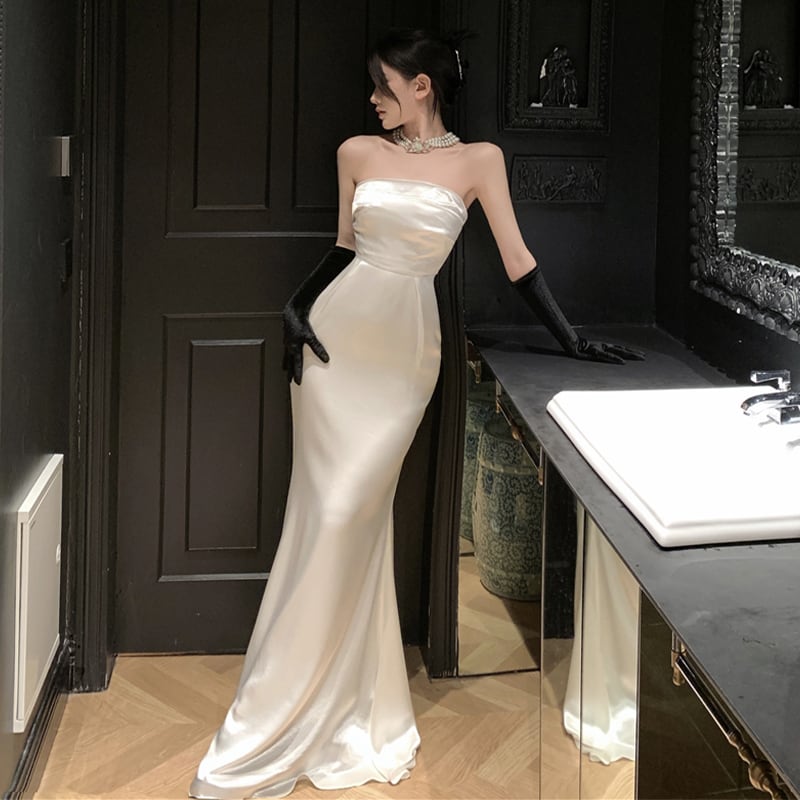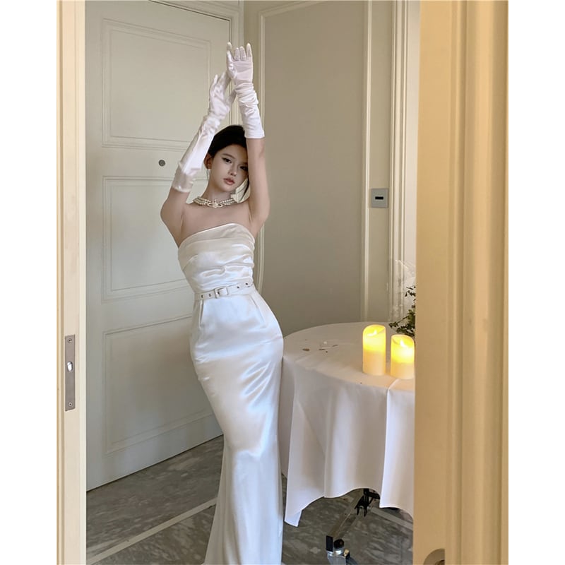 ワンピース セクシー パーティー チューブドレス ベルト付き ロング丈 ホワイト S M L