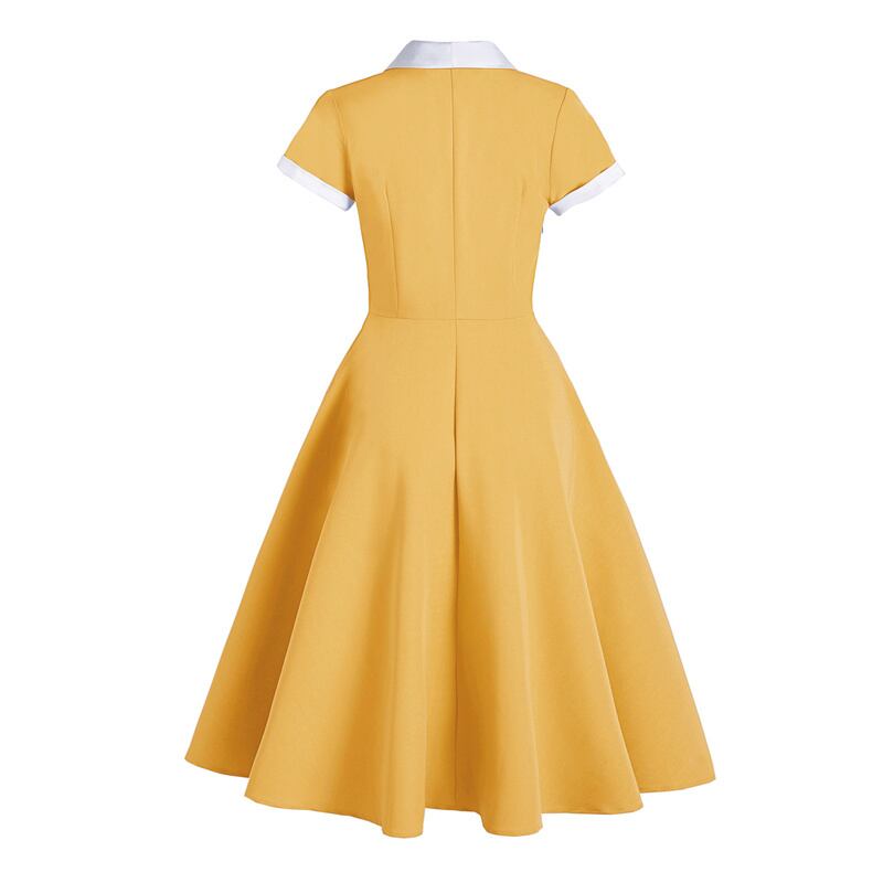 【BaBiシリーズ】ワンピース レトロ ロマンチック Aライン 大振裾 大きいサイズ ブルー イエロー グリーン S M L XL 2XL