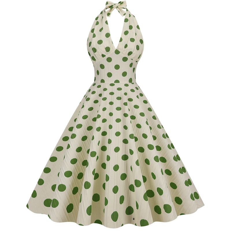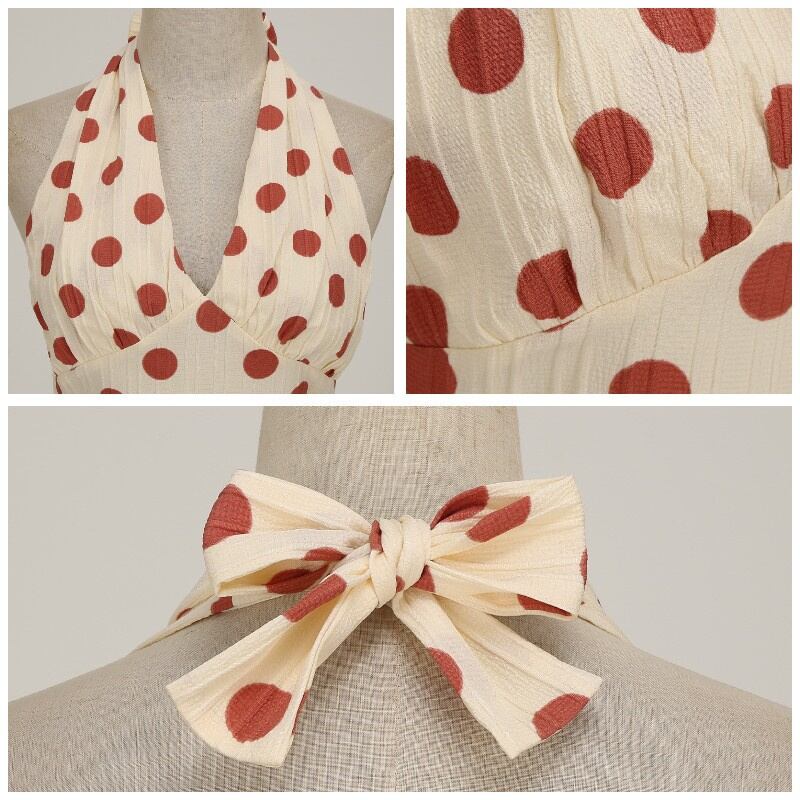 【BaBiシリーズ】ワンピース レトロ ロマンチック ドット柄 ホルターネック Aライン 大振裾 パーティー 大きいサイズ レッド グリーン S M L XL 2XL