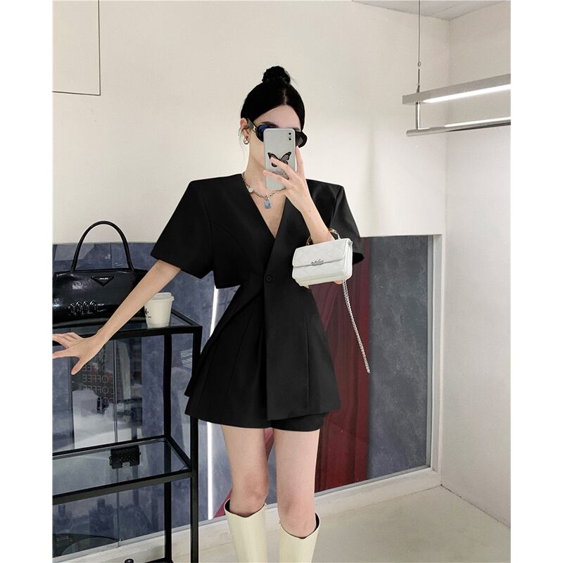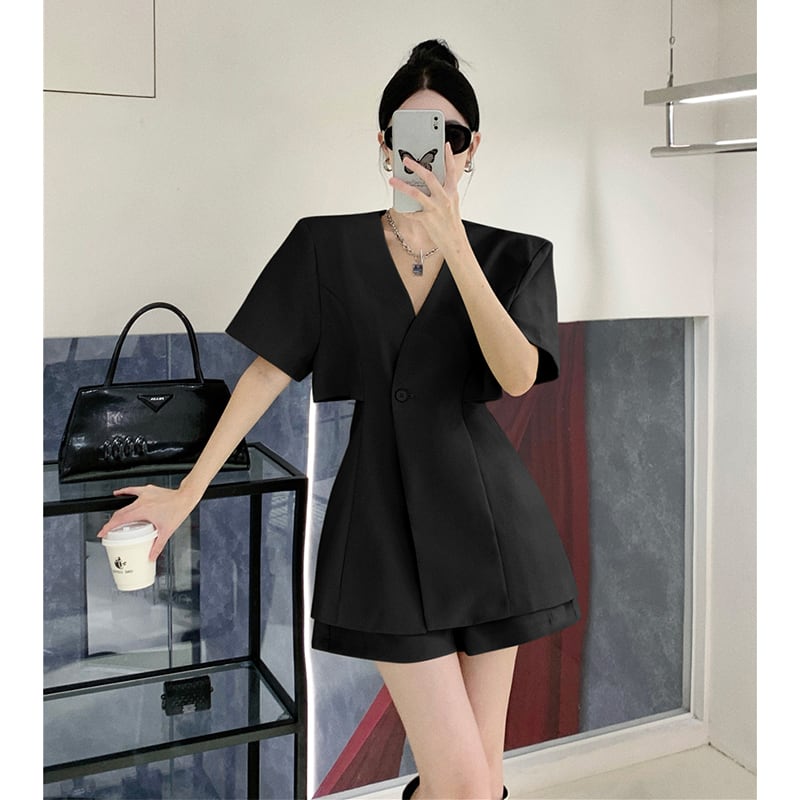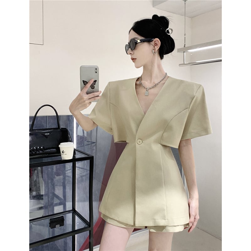 セットアップ OL/通勤 Vネック 不規則 トップス+パンツ ベージュ ライトブラウン ブラック S M L