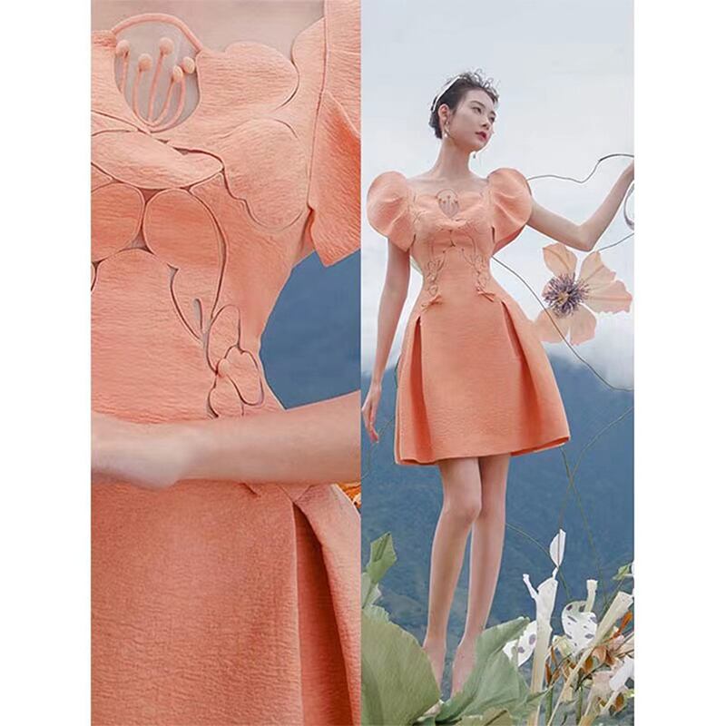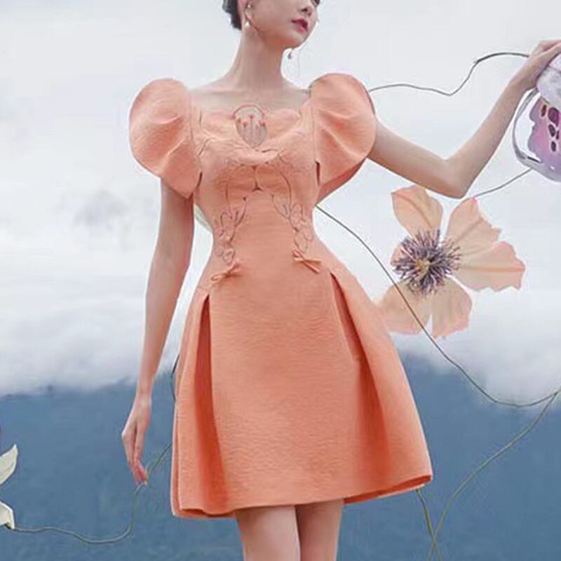 【Airi Styleシリーズ】ワンピース Aライン エレガント 高級感 パーティー オレンジ S M L