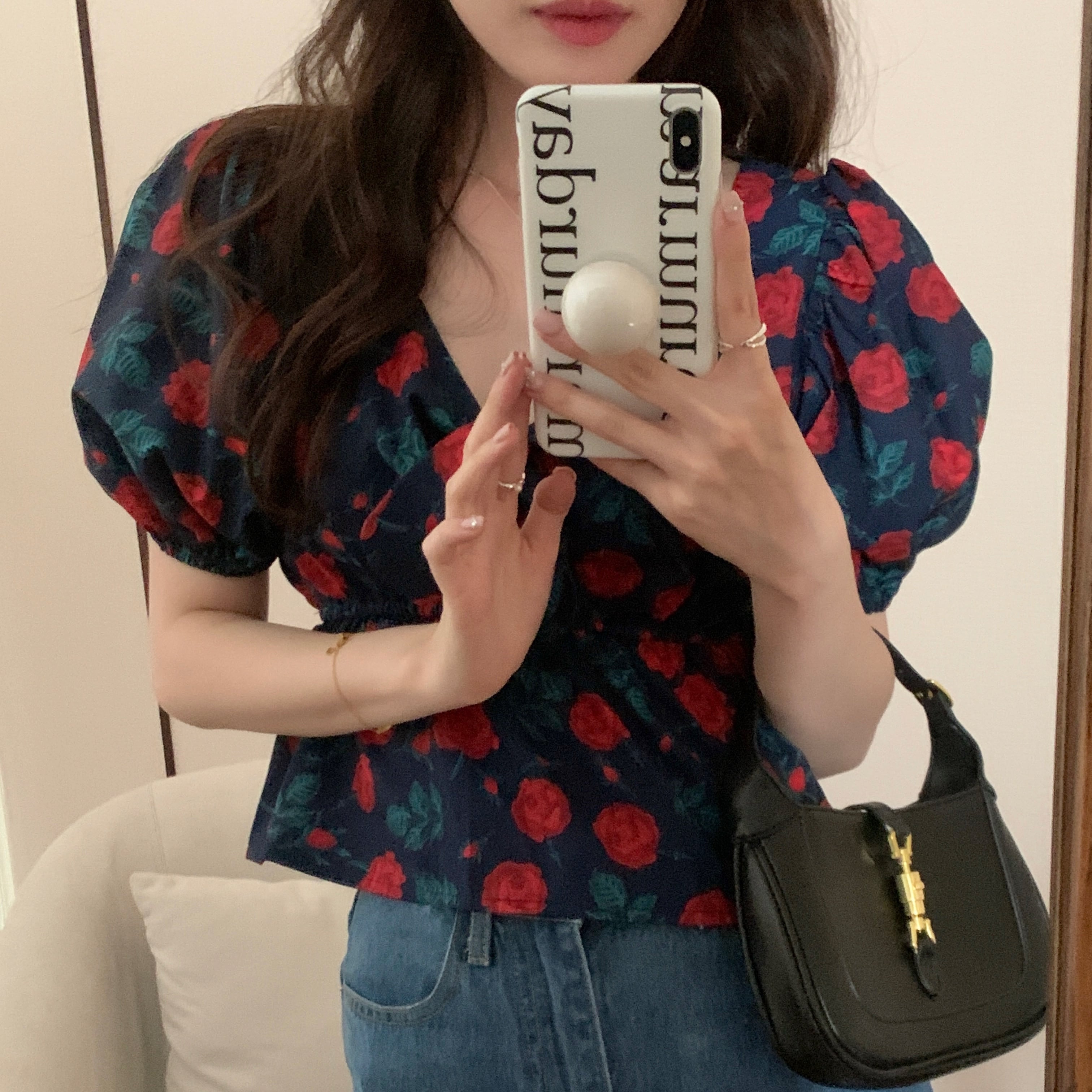 トップス シャツ · ブラウス vネック 花柄 女性らしい パフスリーブ S M