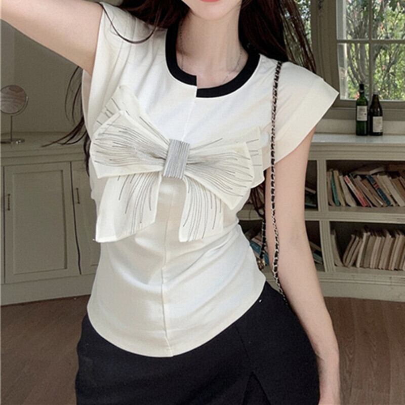 トップス Tシャツ 配色 スウィート リボン ブラック ホワイト