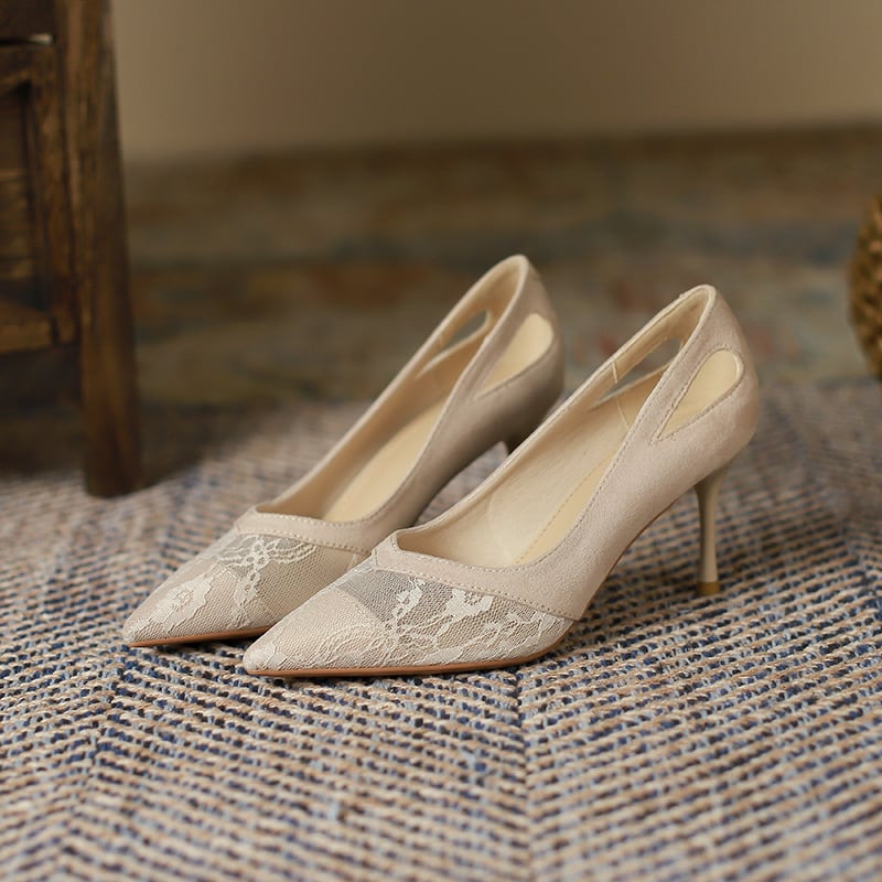 シューズ パンプス 2色展開 レース 花柄 ブラック ベージュ 7CM