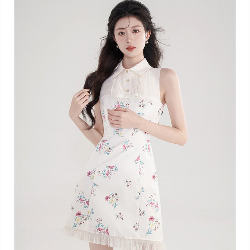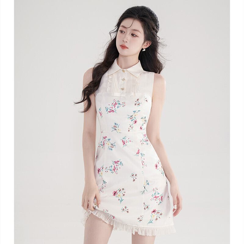 【Airi Styleシリーズ】ワンピース 花柄 POLOネック エレガント 膝上 S M L