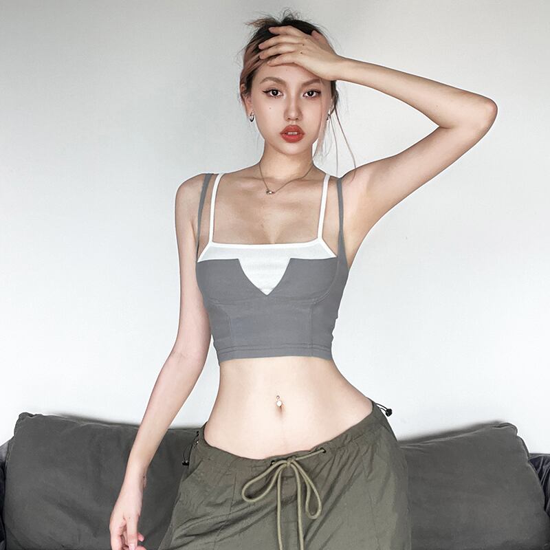トップス キャミソール セクシー 配色 重ね着風 グレー S M L