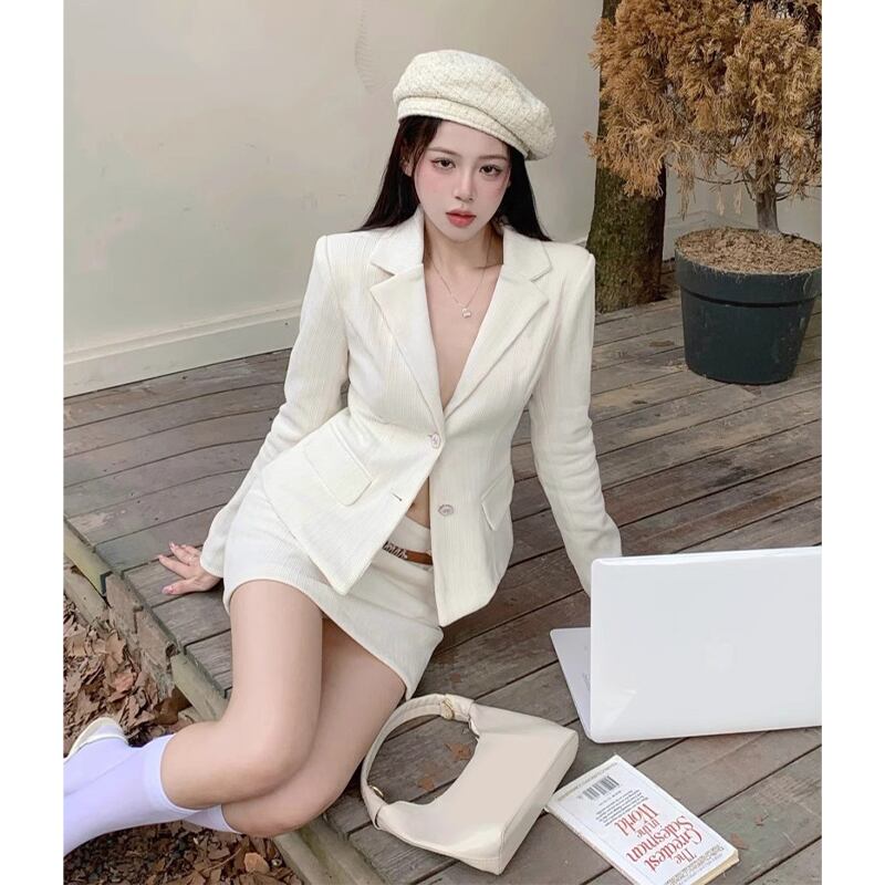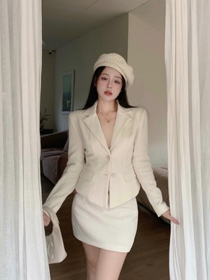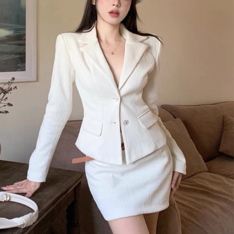 セットアップ ベルト付き 都市ファッション OL/通勤 高品質 長袖 アウター+スカート S M L