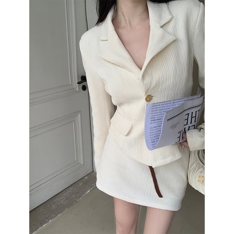 セットアップ ベルト付き 都市ファッション OL/通勤 高品質 長袖 アウター+スカート ベージュ ブラック S M L