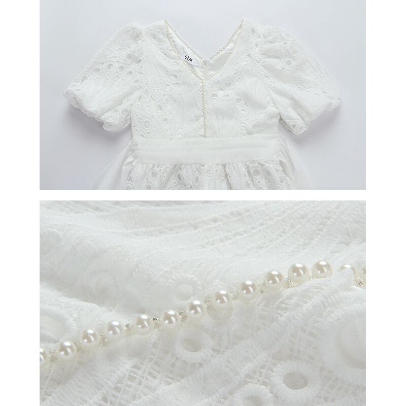 【Airi Styleシリーズ】ワンピース 清新 パーティー Vネック バックリボン 透かし彫り ホワイト S M L