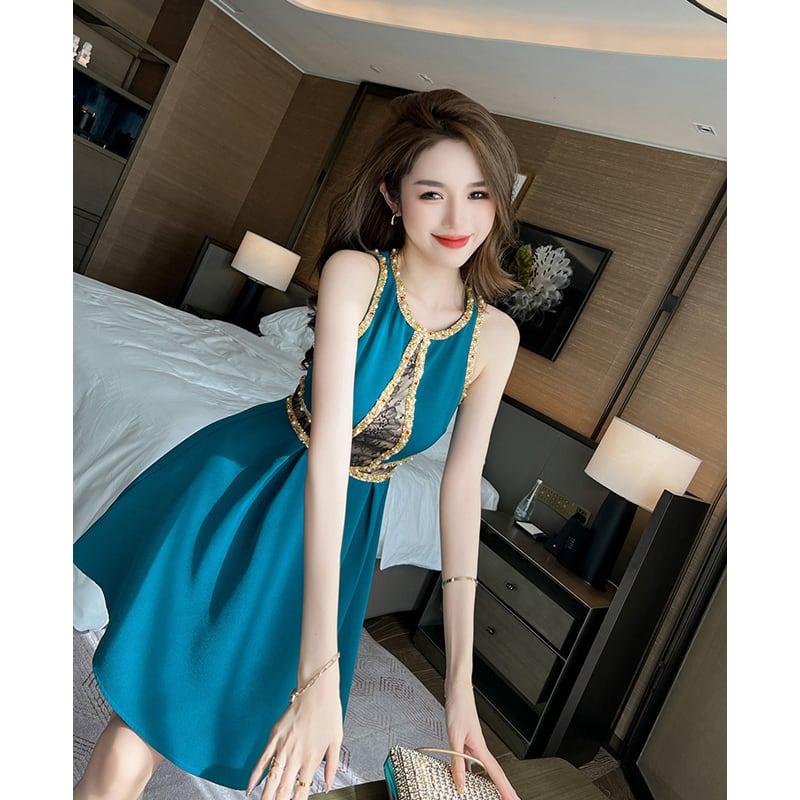 【夕暮薔薇シリーズ】ワンピース セクシー ラインストーン レース ノースリーブ S M L XL