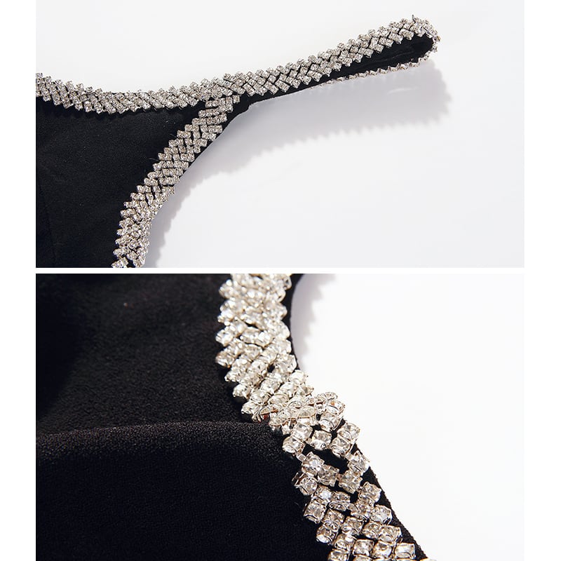 【Airi Styleシリーズ】吊りワンピース 上品らしく ラインストーン パーティー ブラック S M L XL