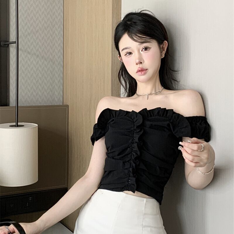 トップス シャツ セクシー ペプラム ボートネックデザイン ホワイト ブラック S M L