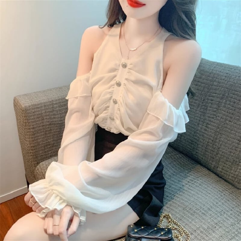 トップス ブラウス 2色展開 ランタンスリーブ オフショルダー ベージュ ピンク S M L XL