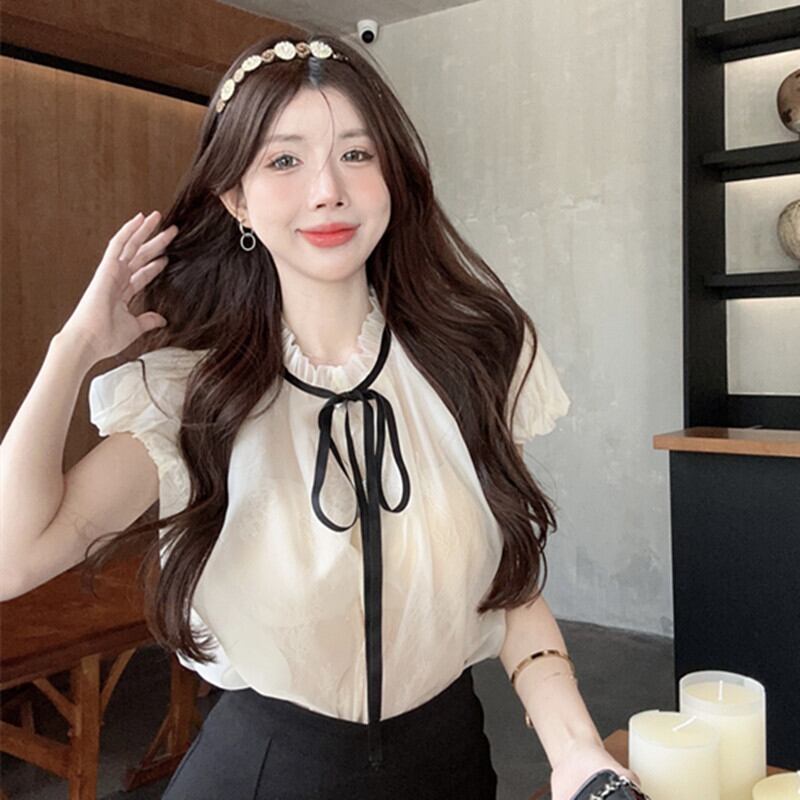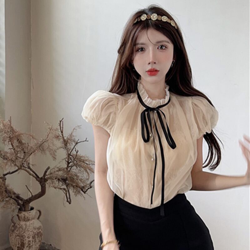 トップス シャツ スウィート 可愛い パフスリーブ アプリコット