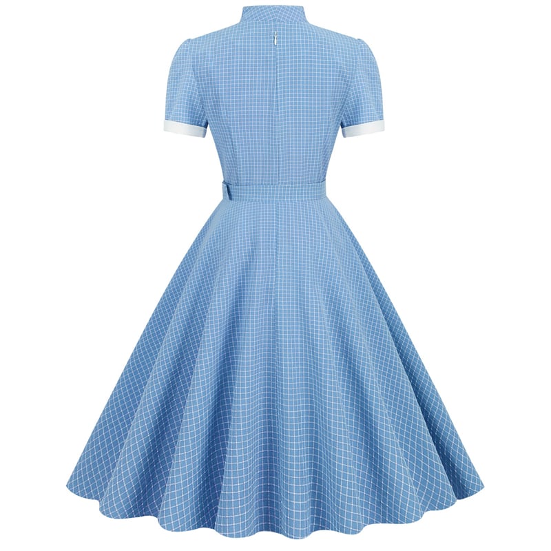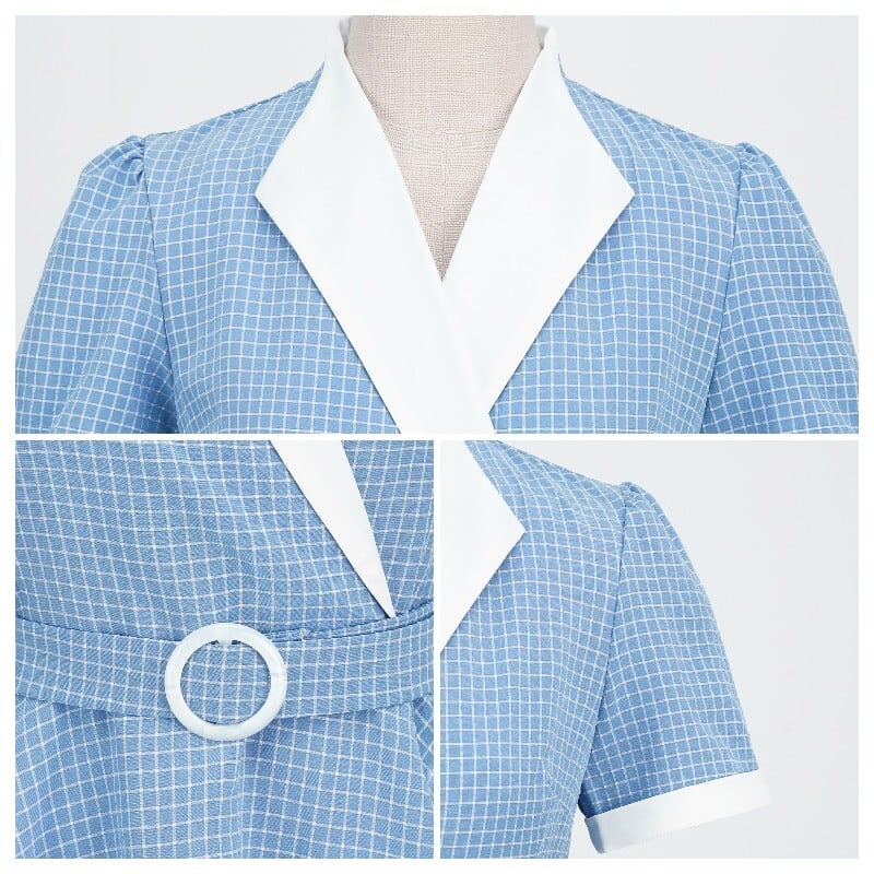 【BaBiシリーズ】ワンピース レトロ ロマンチック Aライン チェック柄 大振裾 大きいサイズ ブルー パープル S M L XL 2XL