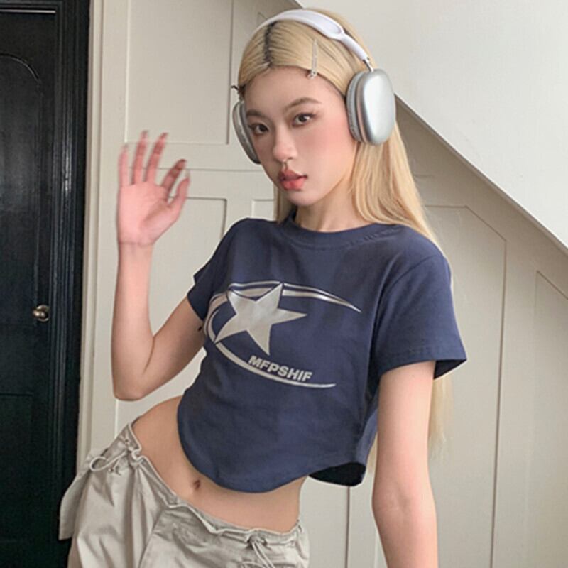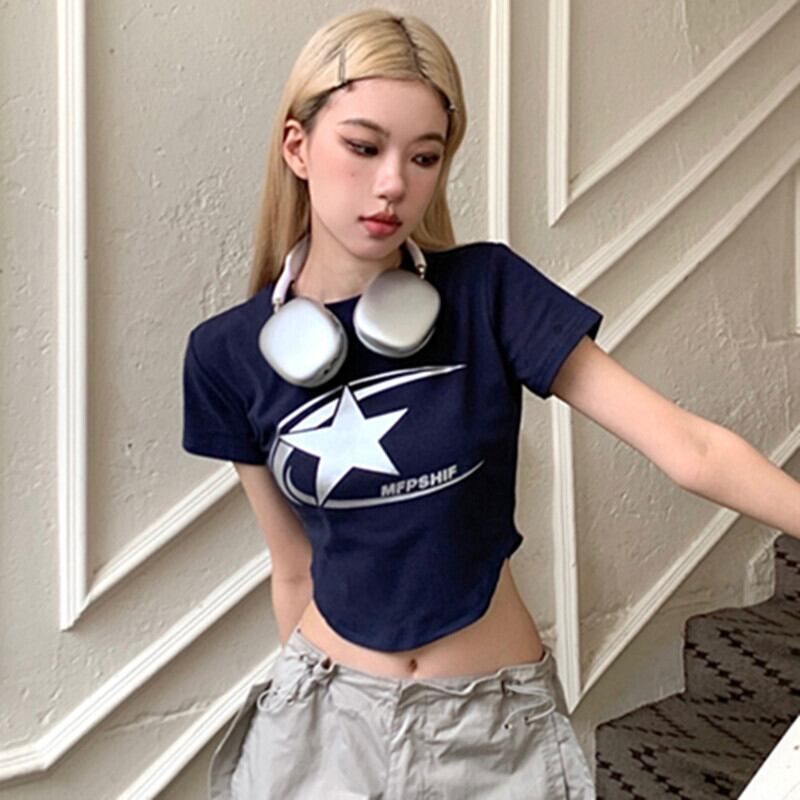 トップス Tシャツ プリント ファッション 半袖 ネイビー ブラック