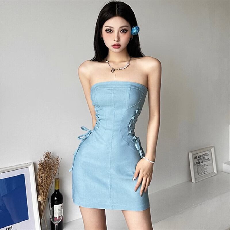【MissJulyシリーズ】ワンピース りぼん Aライン 水色 パーティー ブルー S M L