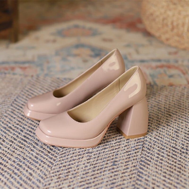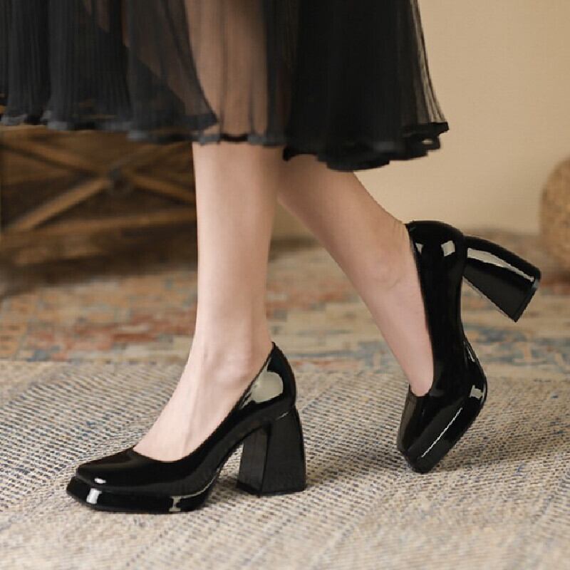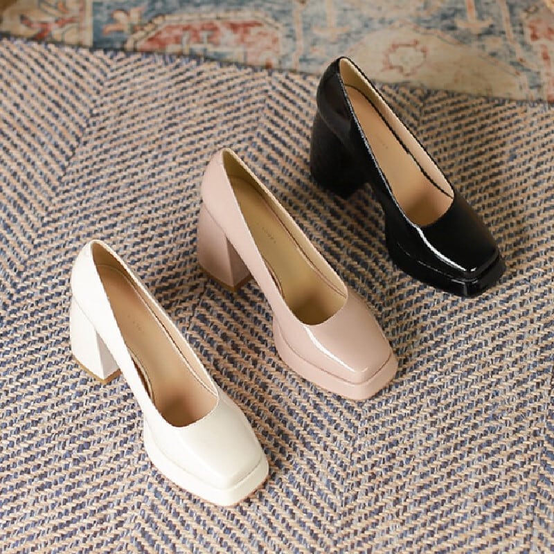 シューズ パンプス 3色展開 メリージェーンシューズ チャンキーヒール ホワイト ピンク ブラック 8CM