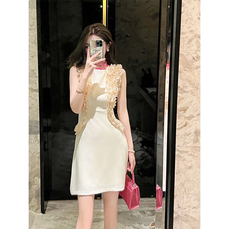 【夕暮薔薇シリーズ】ワンピース セクシー エレガント スパンコール ノースリーブ ベージュ S M L XL