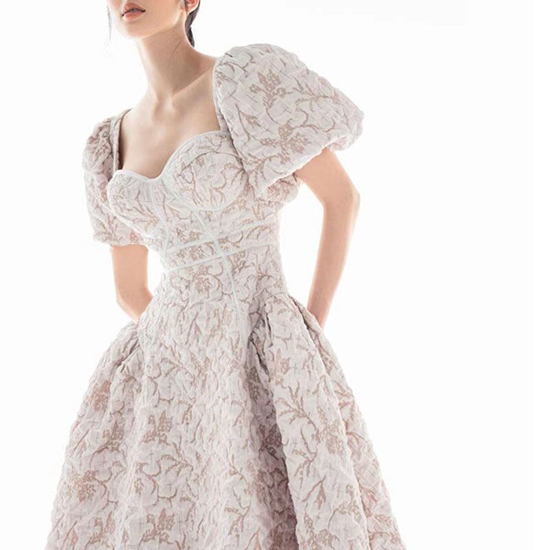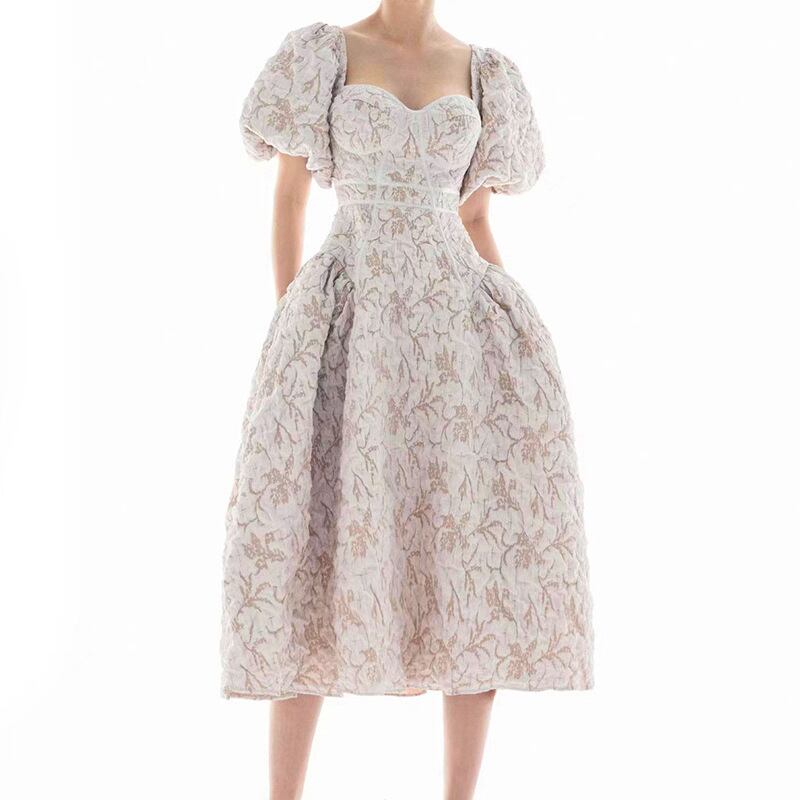 【Airi Styleシリーズ】ワンピース 高級感 ロング丈 谷間を出す ランタンスリーブ バックリボン パーティー S M L
