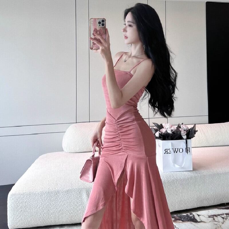 吊りワンピース スリット セクシー 不規則 美人度アップ ピンク S M L