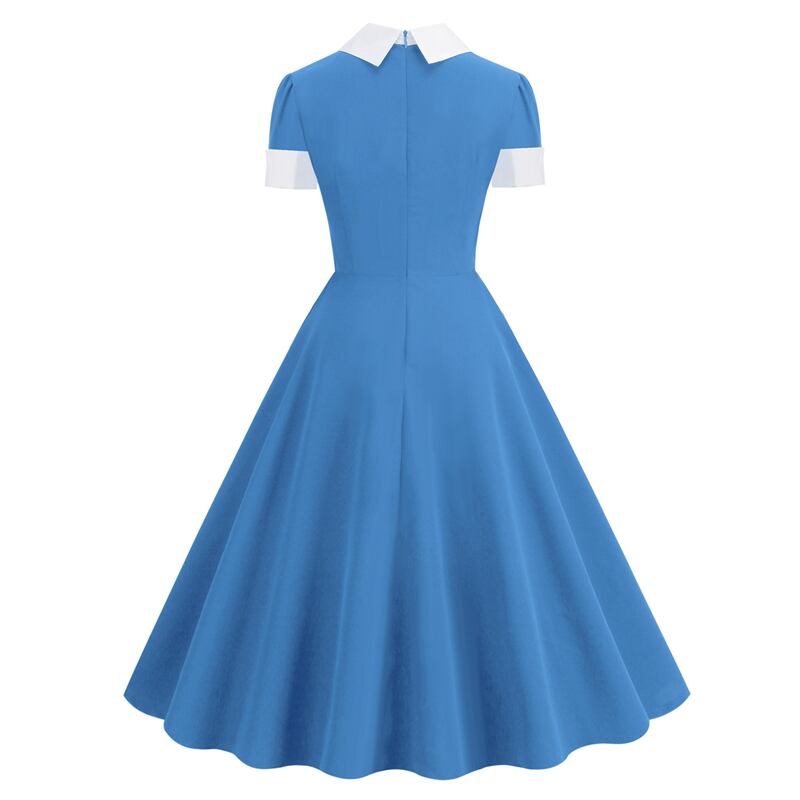 【BaBiシリーズ】ワンピース レトロ ロマンチック Aライン ボウタイ 大振裾 大きいサイズネイビー ブルー グリーン イエロー S M L XL 2XL