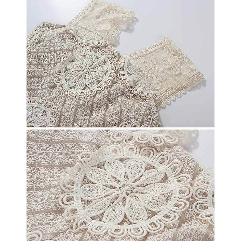 【Airi Styleシリーズ】ワンピース パーティー レース ノースリーブ 透かし彫り ベージュ S M L