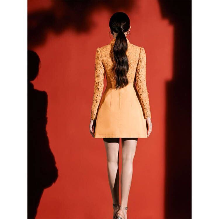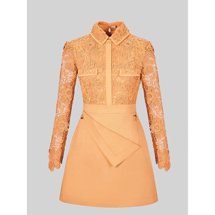 【Airi Styleシリーズ】ワンピース デザイン感 OL/通勤 Aライン レース 透かし彫り 不規則 S M L