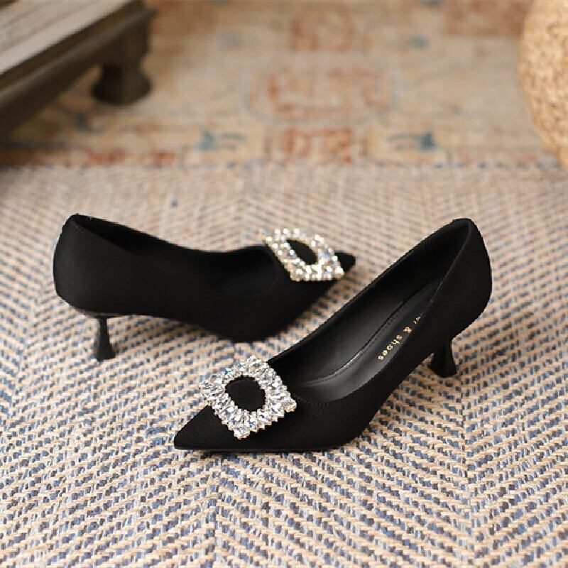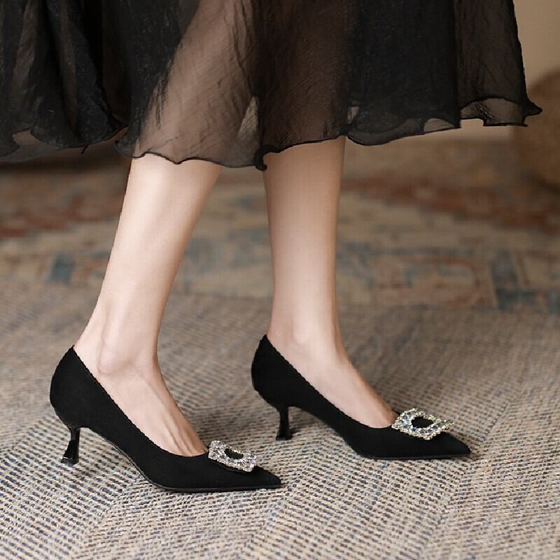 シューズ パンプス 2色展開 シンプル 通勤 ラインストーン ブラック コーヒー色 6CM