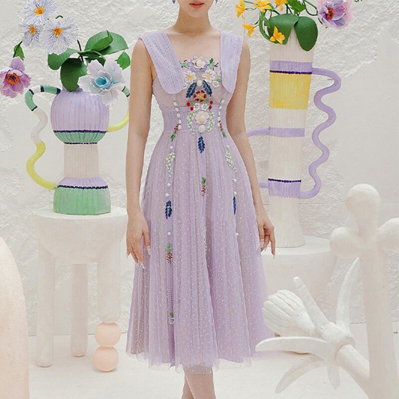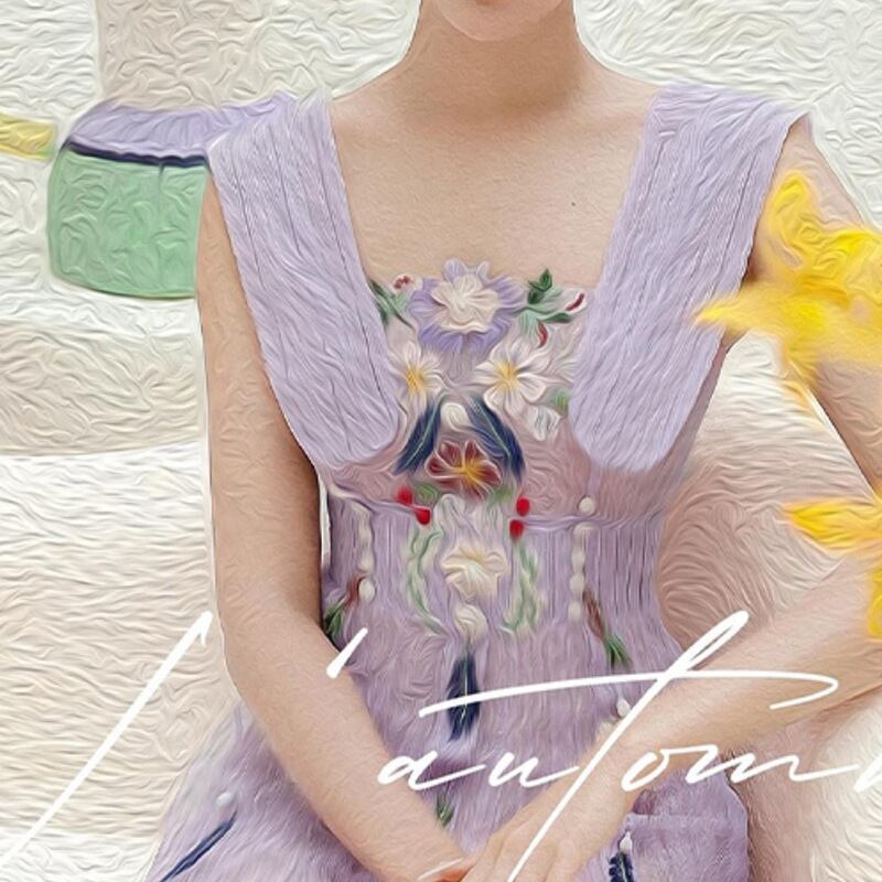 【Airi Styleシリーズ】ワンピース ロング丈 レース 透かし彫り パーティー ベージュ パープル S M L