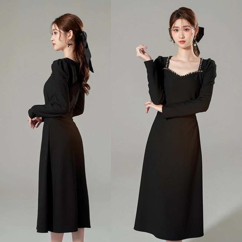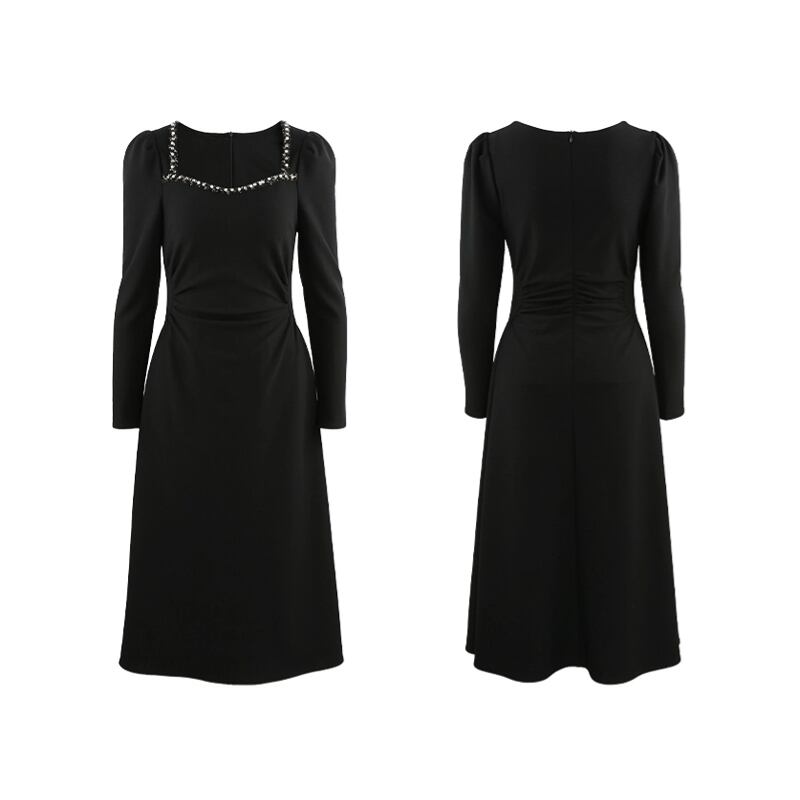 【Airi Styleシリーズ】ワンピース スクエアネック 長袖 気質満点 ブラック S M L