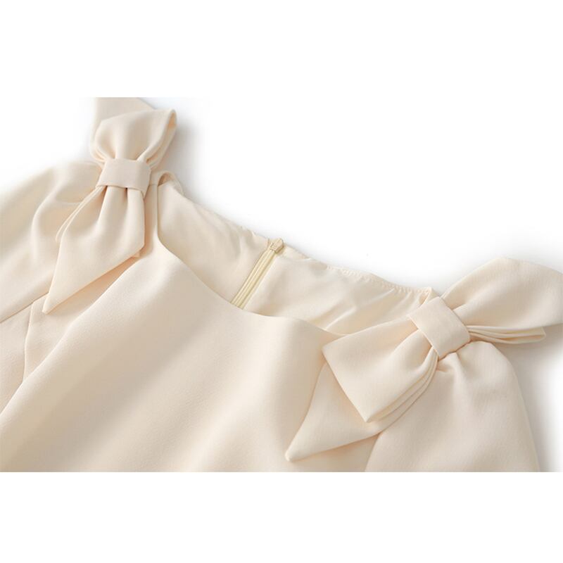 【Blue City シリーズ】ワンピース OL/通勤 Aライン 蝶結び ブラック ベージュ S M L XL