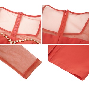 【夕暮薔薇シリーズ】ワンピース スクエアネック パーティー チュール素材 切り替え ラインストーン セクシー 長袖 オレンジ S M L XL