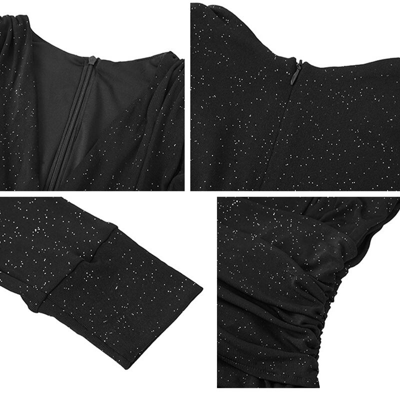 【夕暮薔薇シリーズ】ワンピース セクシー エレガント シュート丈 Vネック ブラック S M L XL