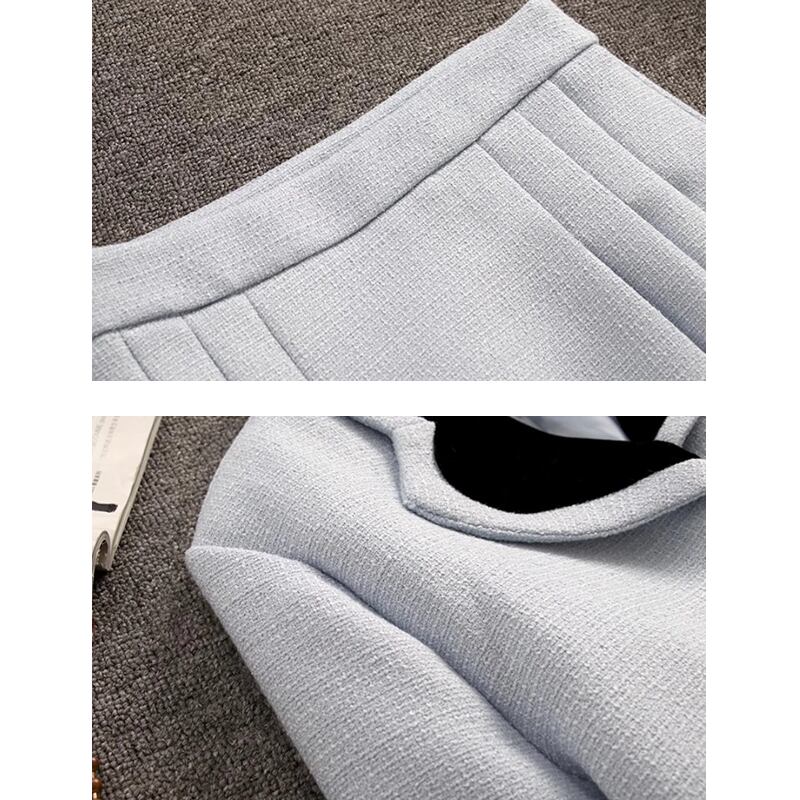 セットアップ ジャケット+スカート 通勤 ツイード ライトブルー S M L