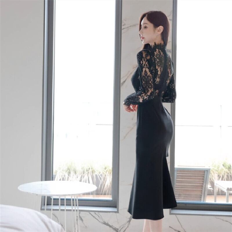 ワンピース レース セクシー 透かし彫り 黒 不規則 目を奪われる ブラック S M L XL