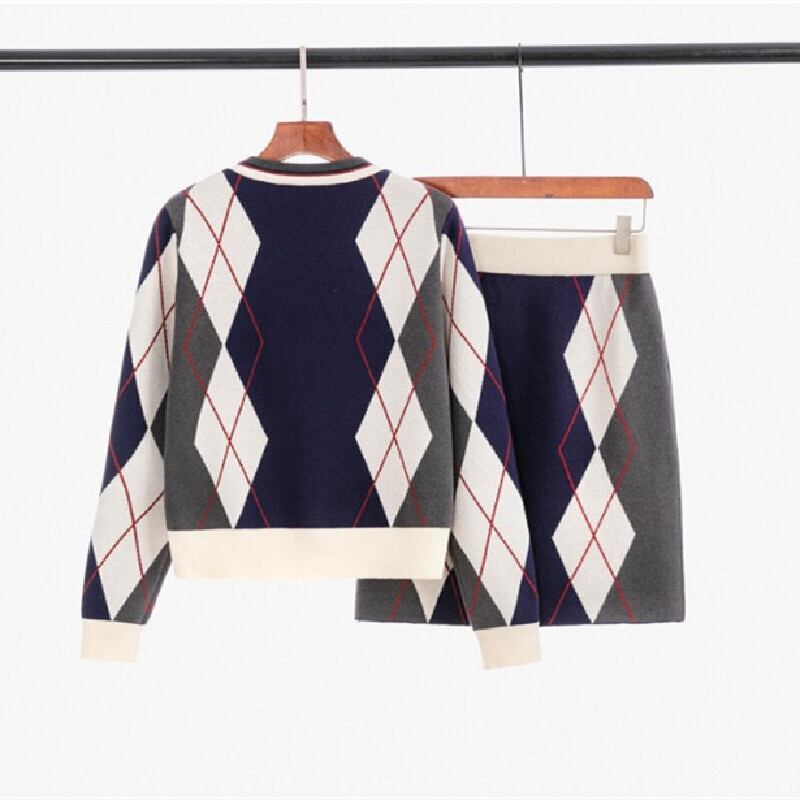 【森森家シリーズ】セットアップ ニット トップス+スカート 長袖 Vネック 配色 S M L XL