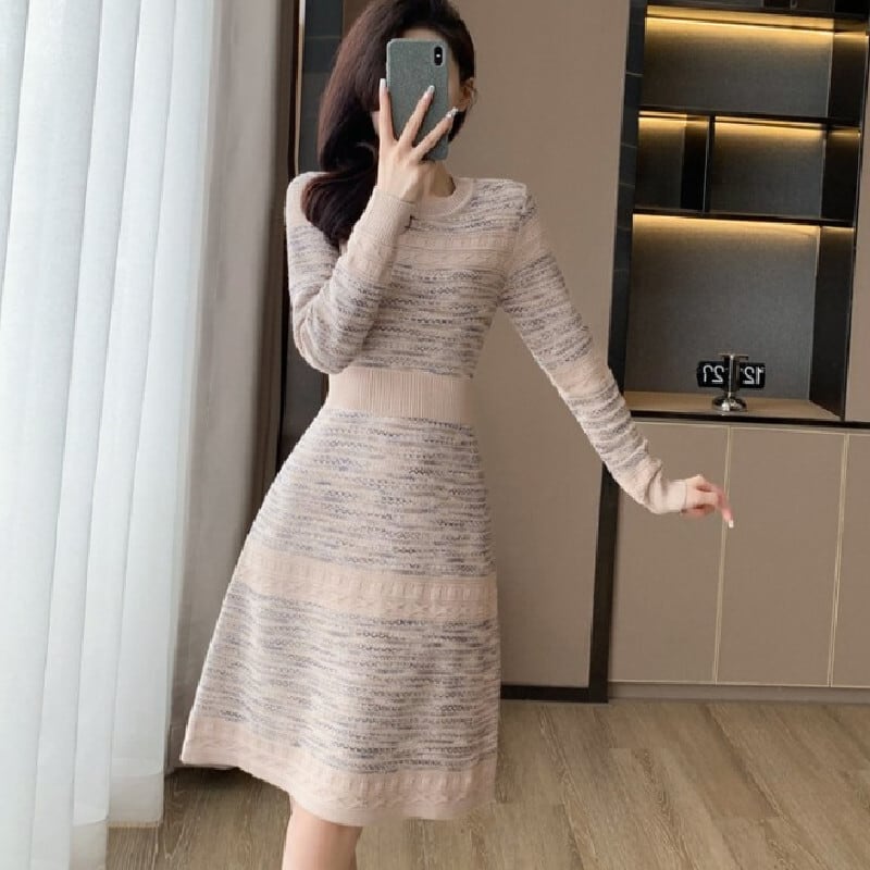 【森森家シリーズ】ワンピース ニット OL/フォーマル フェミニン アプリコット S M L XL