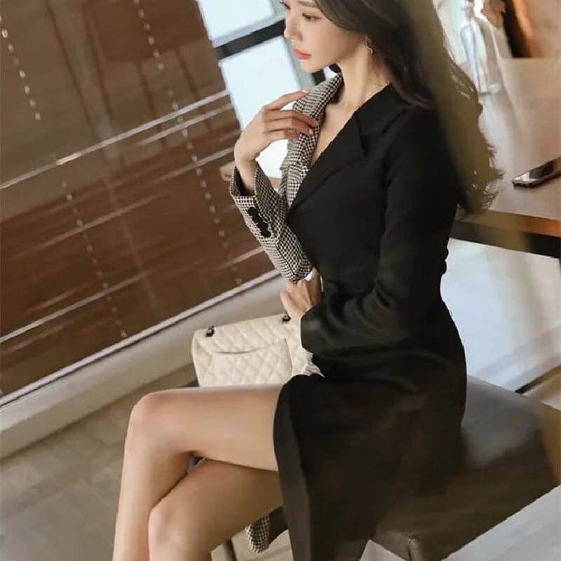 ワンピース OL/フォーマル 配色 Vネック 気質満点 チェック柄 通勤 S M L XL