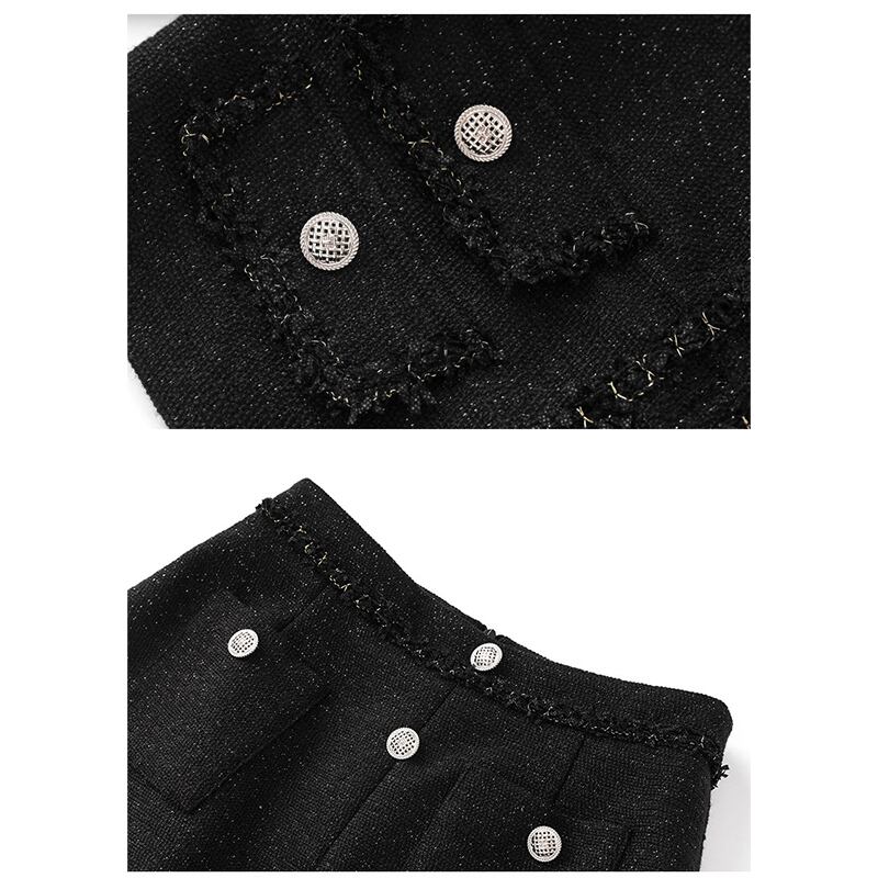 【Blue City シリーズ】セットアップ 高品質 人気新作 OL/通勤 ツイード アウター+スカート ブラック S M L XL