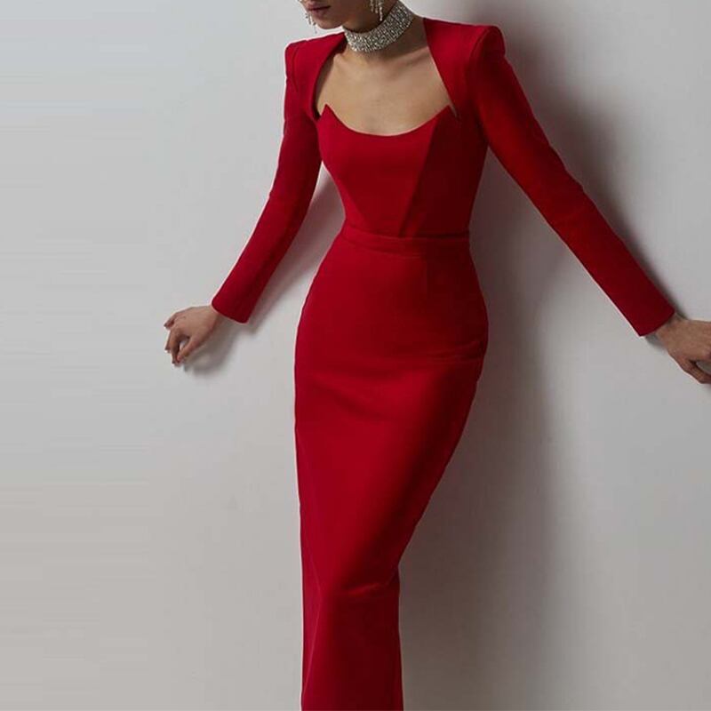 【French Romanceシリーズ】ワンピース ゴージャス パーティー スクエアネック ロング丈ピンク ブラック ホワイト レッド XS S M L XL