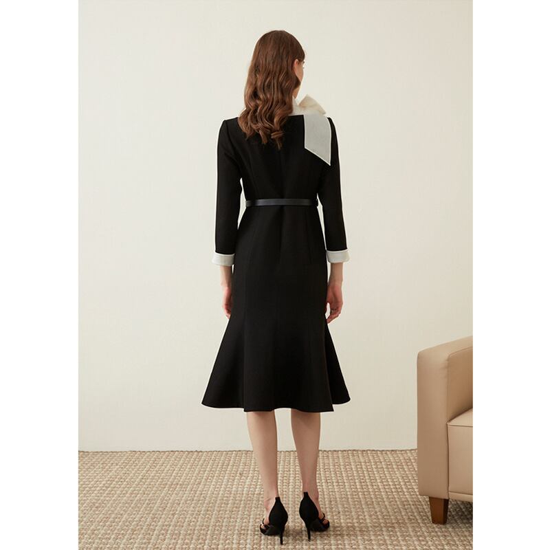 【Airi Styleシリーズ】ワンピース ベルト付き 高級感 パプラム ボタン OL/通勤 切り替え ブラック S M L
