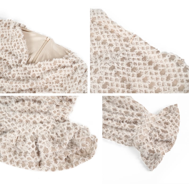 【夕暮薔薇シリーズ】ワンピース ふわふわ セクシー 長袖 Vネック パプラム ベージュ S M L