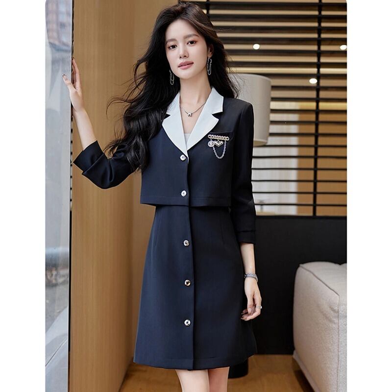 【璧和シリーズ】ワンピース 2色展開 スーツ 通勤 大きいサイズ シングルブレスト ブラック グレー S M L XL 2XL