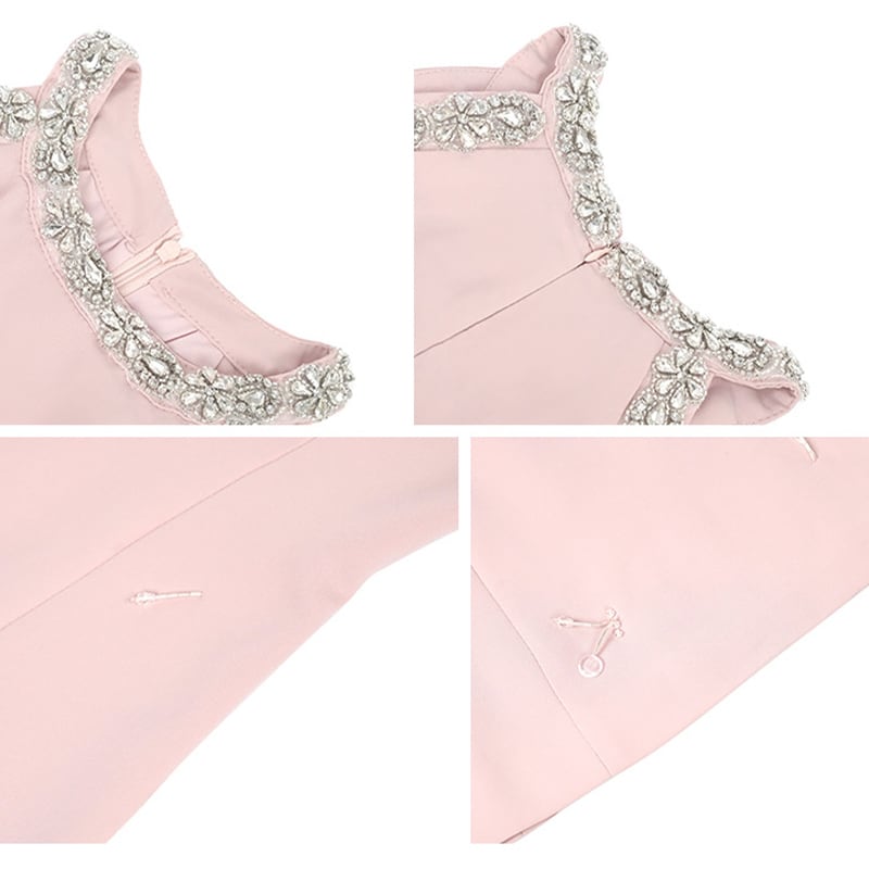 【夕暮薔薇シリーズ】ワンピース パーティー 気質UP ラインストーン Aライン ノースリーブ ピンク S M L XL