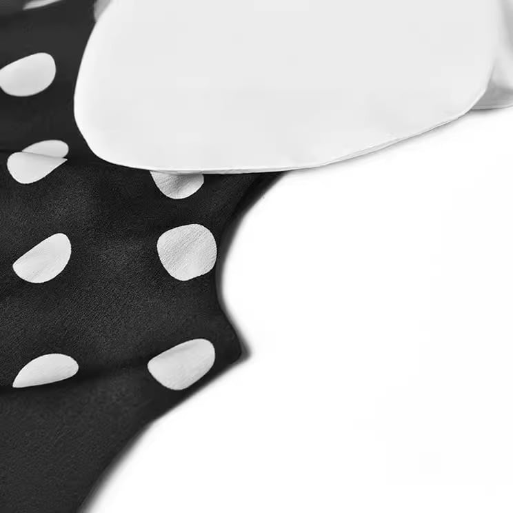 【Airi Styleシリーズ】ワンピース ノースリーブ ロング丈 ドット柄 ラウンド裾 ブラック S M L XL